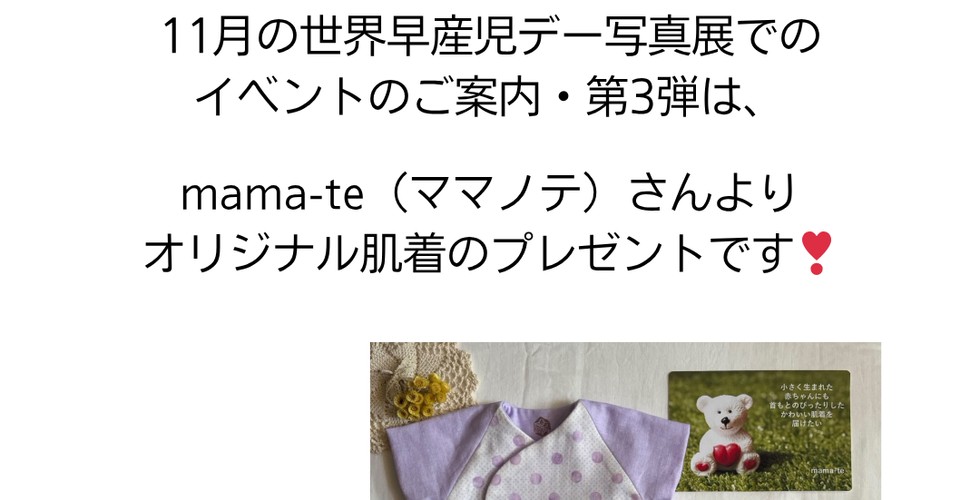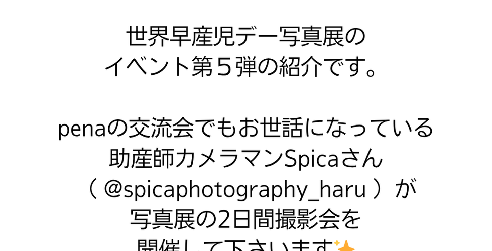 NPO法人penaが主催する世界早産児デー写真展で実施するイベントをご紹介します。