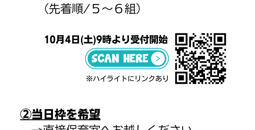 →10月4日(土)9時より受付開始 (先着順/5~6組)