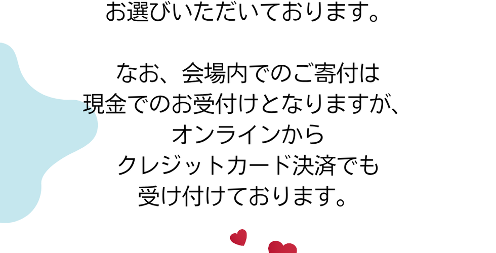 なお、会場内での寄付は現金での受付けとなりますが、オンラインではクレジットカード決済も対応しております。