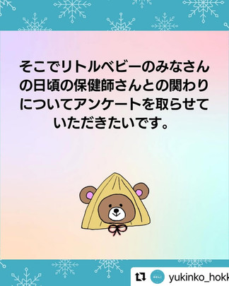 いつも仲良くさせてもらっている北海道リトルベビーサークルのゆきんこが、保健師さんとの関わりについてのアンケートを実施しています!